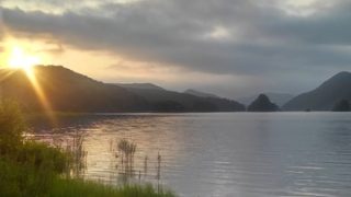 梅雨の終わりの檜原湖で